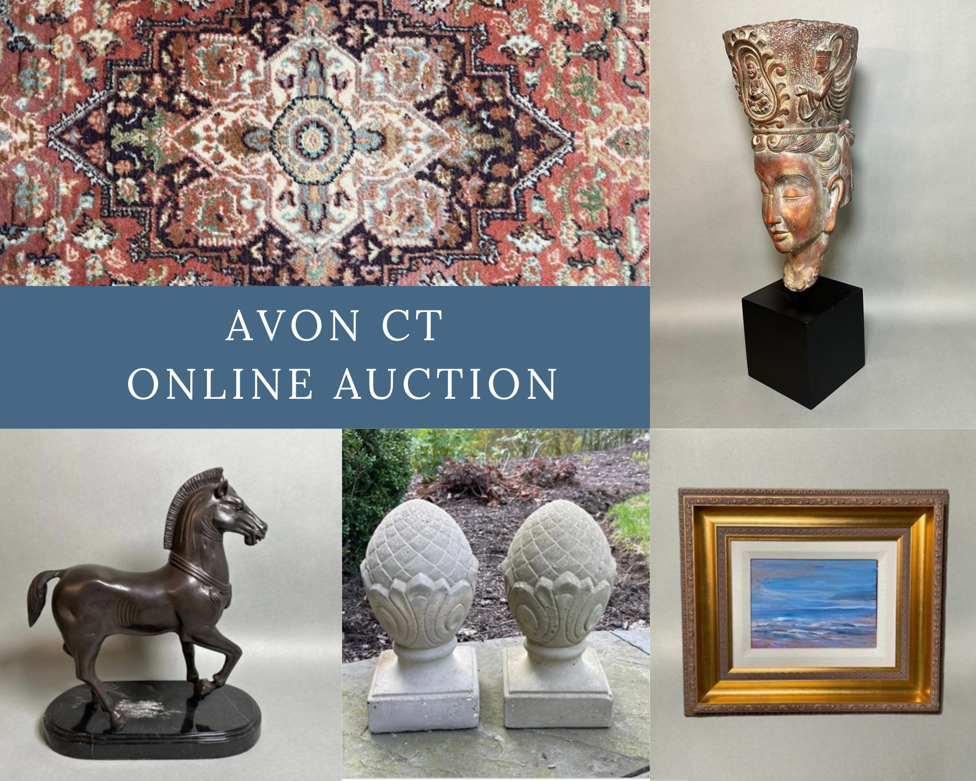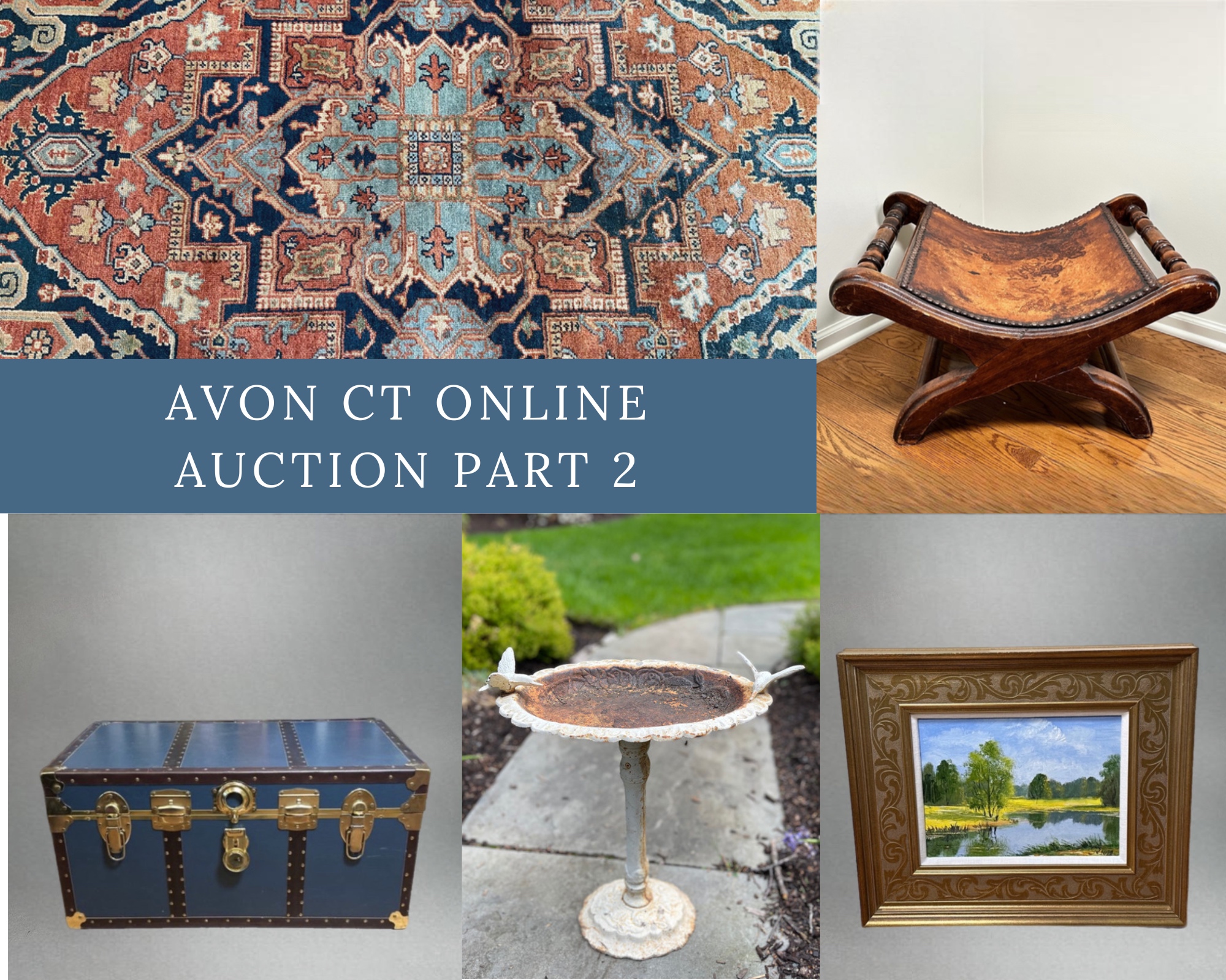 Thank you for visiting our auction from a beautiful estate in Avon CT. A fantastic mix filled with great decor, furniture, outdoor furniture & decor, lawn tools & equipment, vintage & antique collectables, books, art and so much more. We are here to answer any questions you have. Happy Hunting! Chris & Lauren