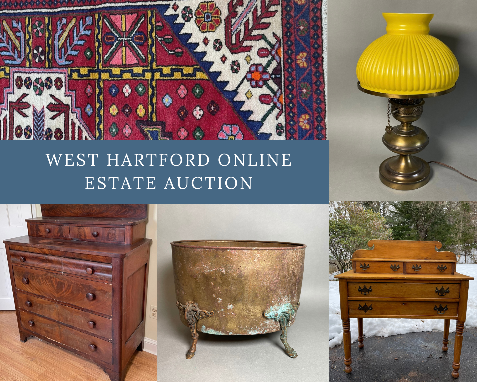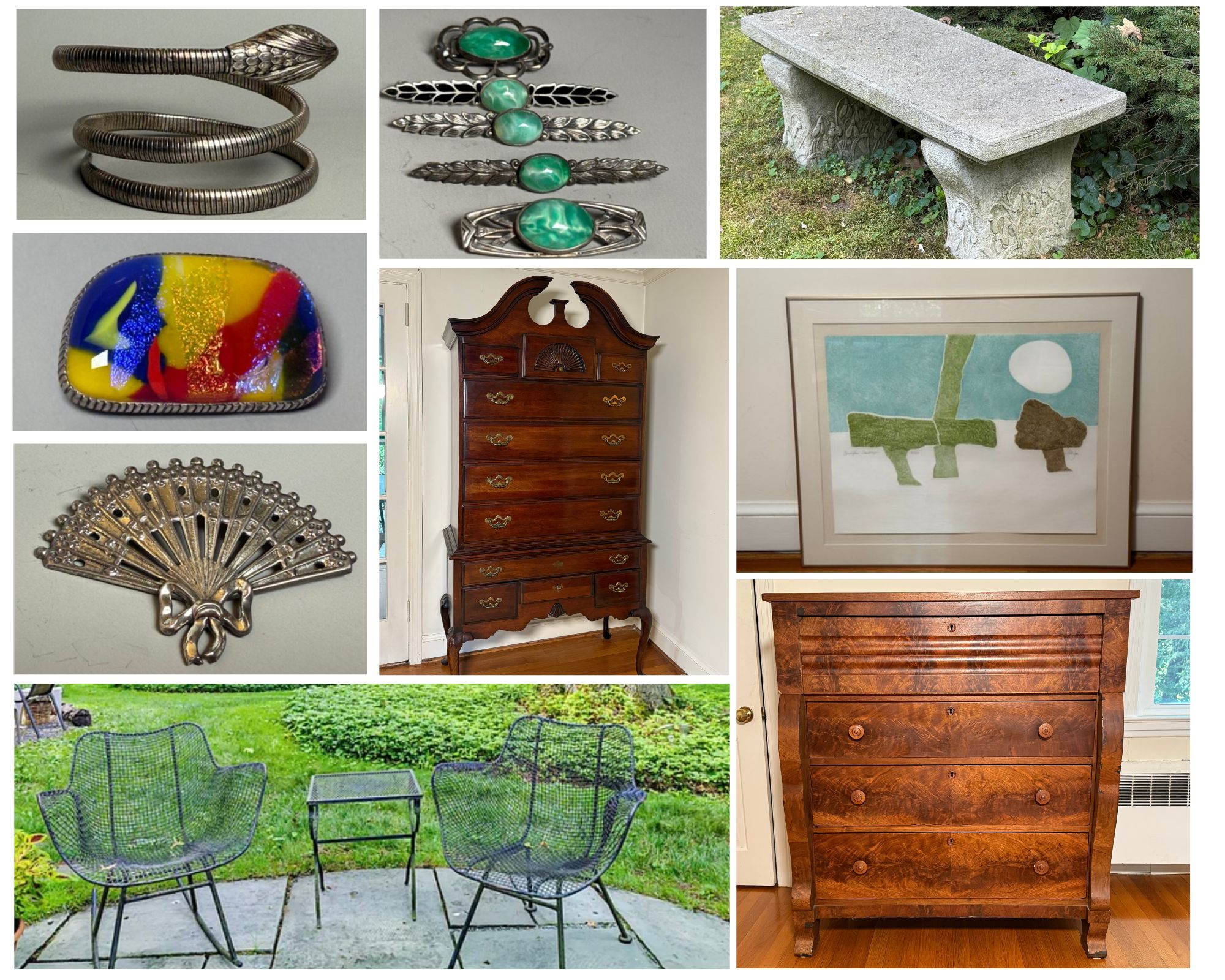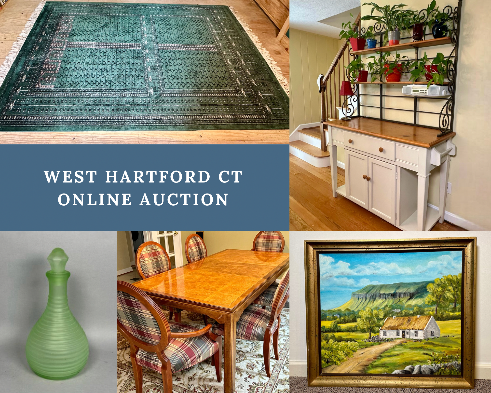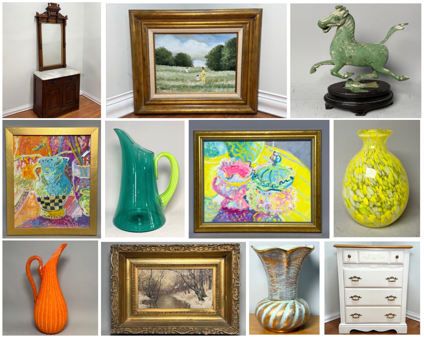 A fantastic moving sale with so many treasures in West Hartford, CT Thank you for visiting our auction! A great mix including tons of amazing antique furniture, signed pottery pieces, tons of art, beautiful rugs, amazing home decor, clocks, vintage & antique collectables, crocks, vintage kitchenware, vintage & antique glass, beautiful lamps, outdoor lawn equipment, tools, outdoor decor, fantastic vintage hats, sterling silver, gold & silver jewelry, mirrors and so much more! We are here for anything you need so please reach out. Happy Hunting! Chris & Lauren