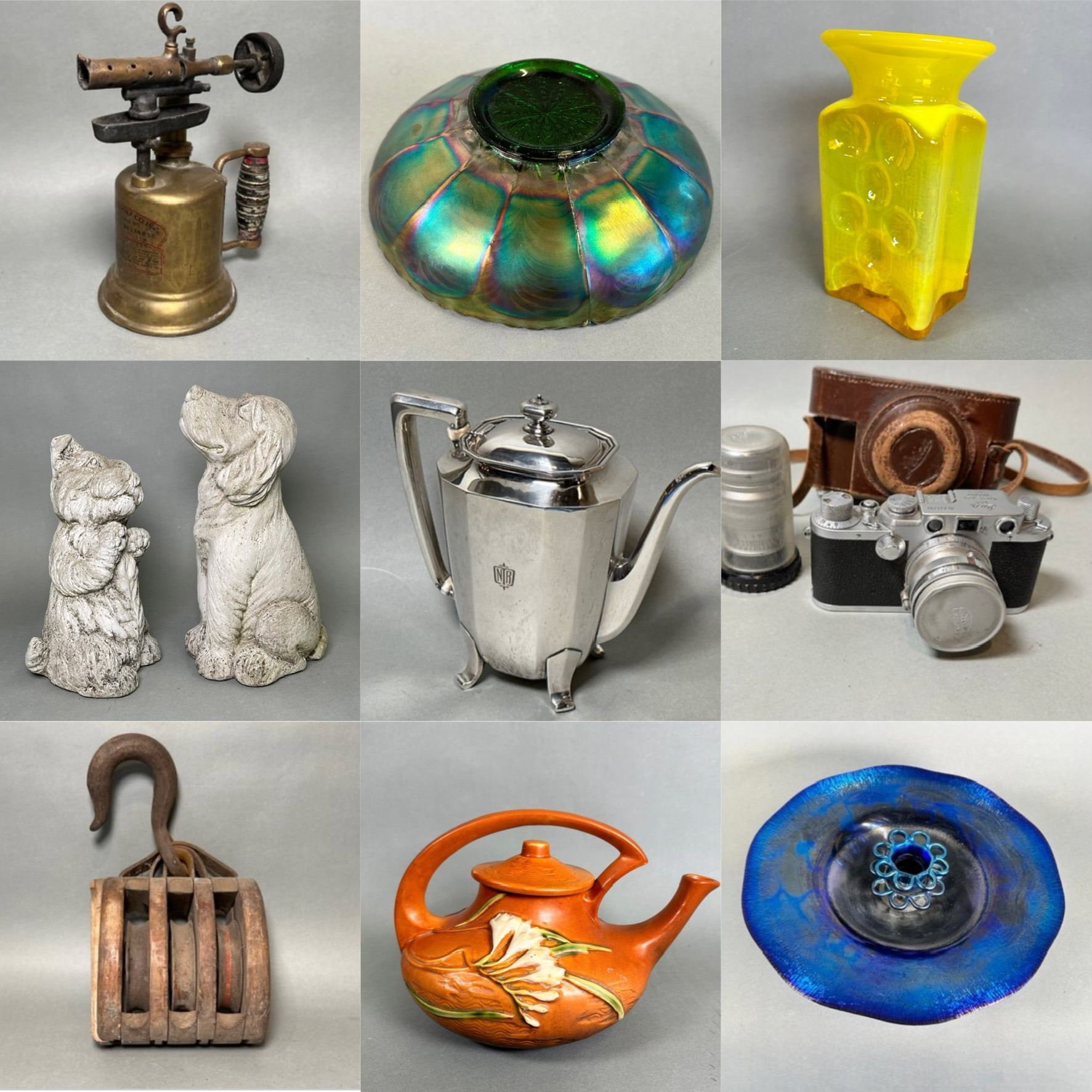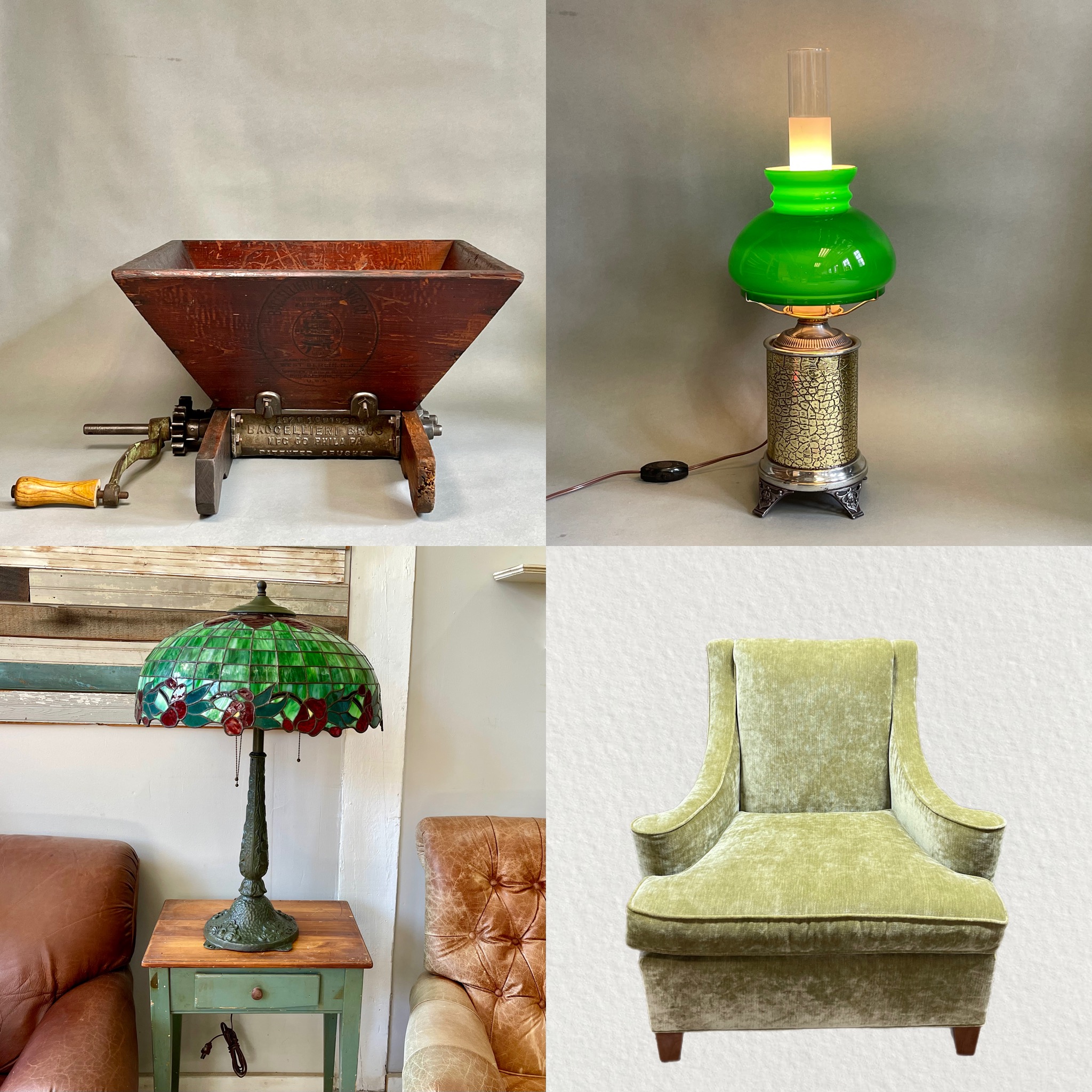 Thanks for checking out our Collinsville CT (mostly) Antique and Vintage collectible auction! There are some fantastic collectibles in this auction, with treasures pulled from a few different high end estates. There’s a great variety: Gorgeous antique & vintage lamps from a lifetime collector, great primitive items (don’t miss that antique Baccelieri wine fruit crusher!), a fantastic Collins Company machete, tools, a large collection of Lladro and Hummels in their original boxes, Waterford Crystal, Royal Doulton, Tiffany & Co, Fenton, a rare 1920s Pierre D’Avesn Daum Nancy Vase, Pyrex, amazing furniture pieces including a great Candice Olson green sofa and chair. Be sure to check out the gorgeous Century Furniture that server — amazing! You can preview some of the items LIVE this Sunday in our showroom. Check EACH individual listing to see if that item is available for preview. 10-2pm. 50 Depot Street Collinsville CT. You enter double doors of Axe Factory and follow signs downstairs to us. We can ship ALL items through UPS store Canton CT. Check special instructions for more info on that. Happy bidding!