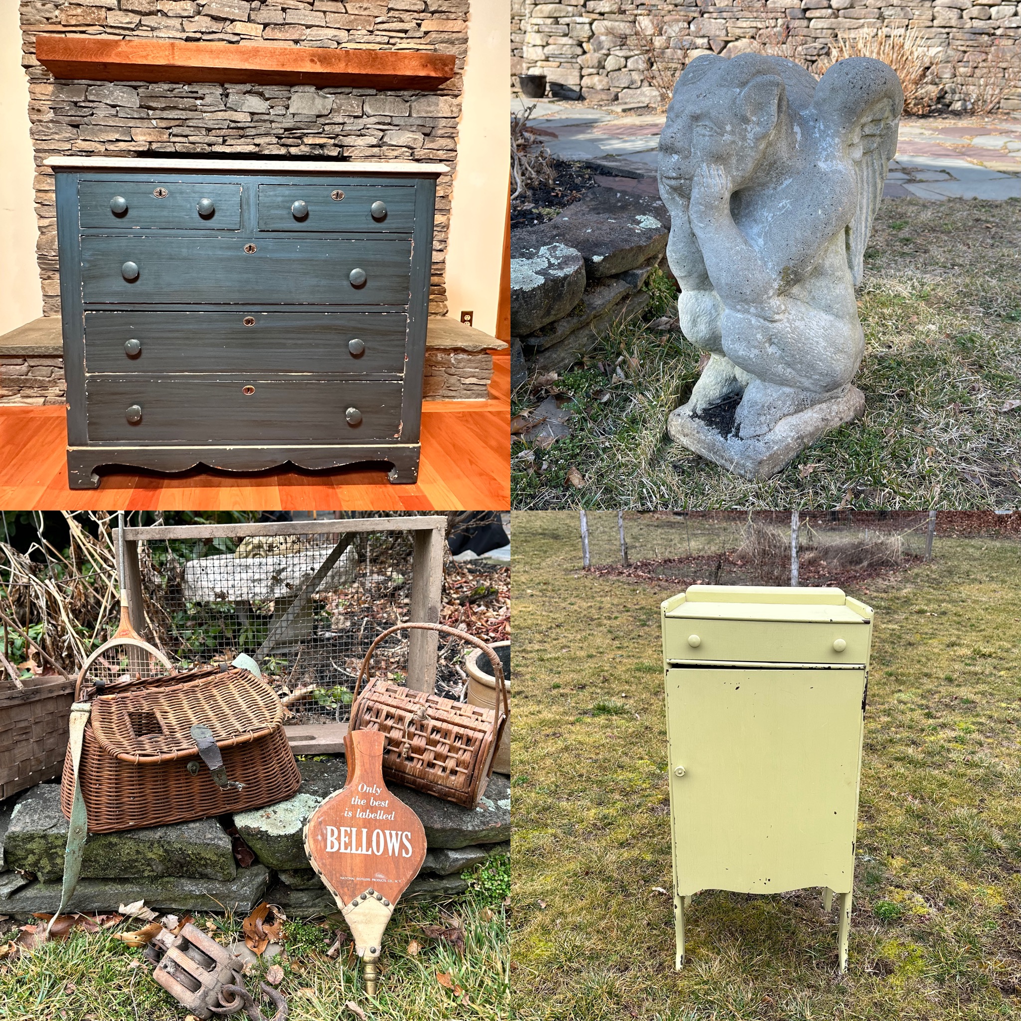 Explore the treasures from our store, Bridge Street Rustics, in Canton/Collinsville CT, located in the Collins Axe Factory. We are closing our 2,200 square foot retail store so that we can expand our warehouse that is below our store space, and spend more time building online auctions, both in the warehouse and at different homes throughout the Farmington Valley. In addition to the contents from our store, there are also treasures from our friend who passed away and had a booth over at Antiques on the Farmington. We also have a booth at Antiques on the Farmington and will be moving from our single booth to our friend's double booth, so we are helping his family clear out his booth to prepare for our move in. By going from a single to a double booth, we can offer more retail, while still building online auctions. To all of our amazing store customers, we hope to see you in our antiques booth and at auction pick ups in the future. This will be the last pick up in our store space, and going forward, you will pick up in our warehouse below the store or at the Estate if the auction is built there. Help us find new homes for all of these wonderful items! Always reach out with any and all questions. Chris & Lauren 860-368-0122 (text is best)