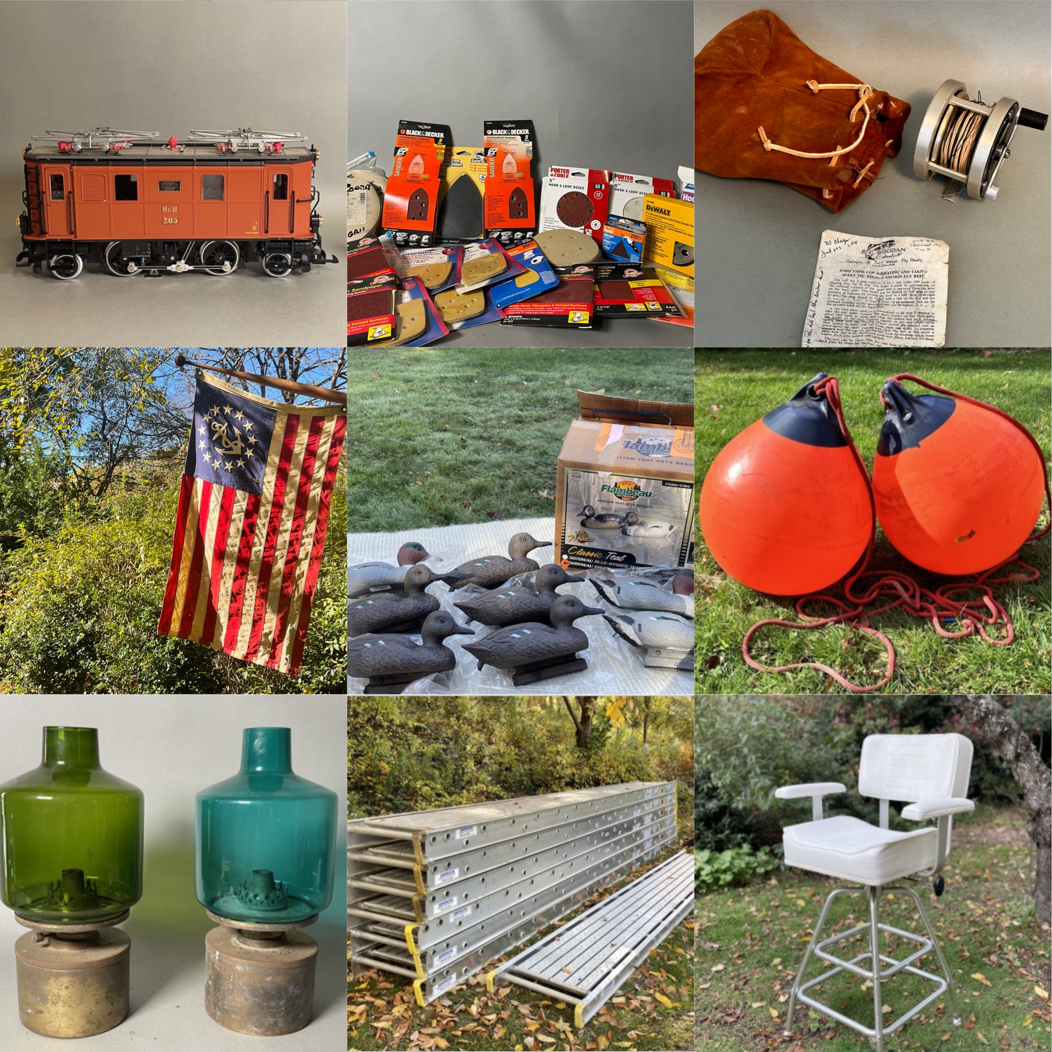 We are excited to present to you this AMAZING estate auction out of Hadlyme CT. A large variety — HUNTING, FISHING, TOOLS, TRAINS, BOATING, CONTRACTOR ITEMS, FURNITURE, ANTIQUE & VINTAGE COLLECTIBLES, HOME DECOR, STERLING & so much more! OVER 90 TRAIN RELATED LOTS! Over 70 hunting, fishing and boating lots. Over 80 tool/home improvement lots. Don’t miss the high end fly fishing items like the SE Bogdan reel & FE Thomas fly rod, scaffolding/staging, decoys, the Fickle Reed Company Rattan chairs, the 10 Stanley Promobile Job chests on wheels, and so much more. Be sure to scroll through the entire auction, as everything is spread out from beginning to end — lots of great stuff! We offer nationwide shipping — we will drop your item(s) off to UPS where they will pack and ship it for you. Please reach out with any questions! Thank you, Chris & Lauren