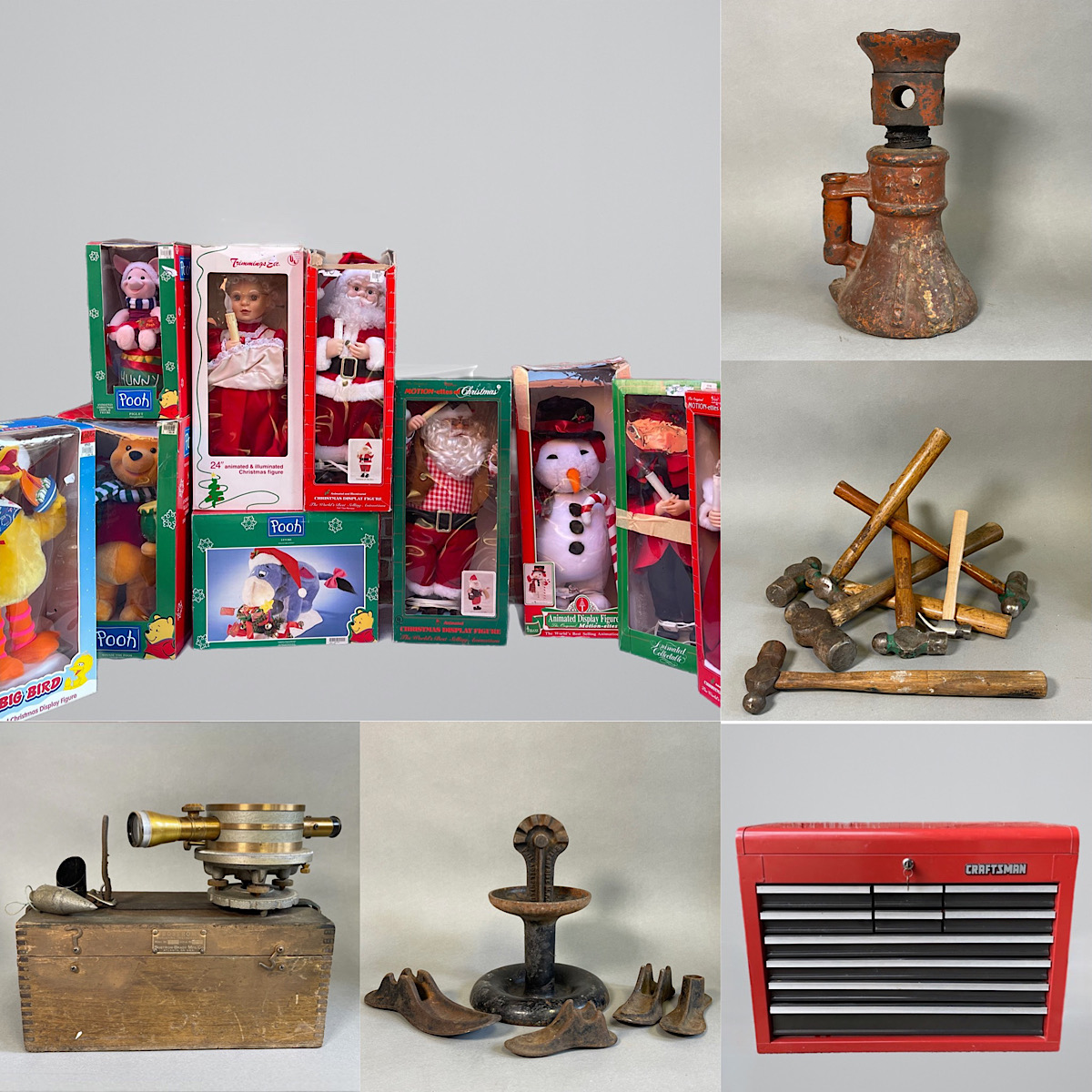 Thanks for visiting our Collinsville CT auction. A fantastic mix of tools - vintage, antique and new! Some great vintage toys, a nice collection of vintage Christmas, including lots of the animated and illuminated figures. A nice assortment of electronics, records, magazines, vintage and antique collectibles and more. Thanks for bidding!