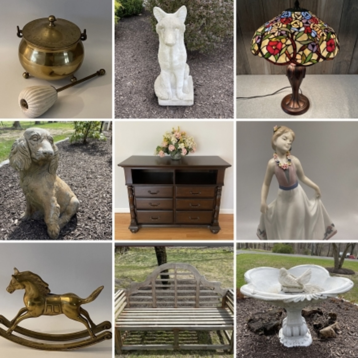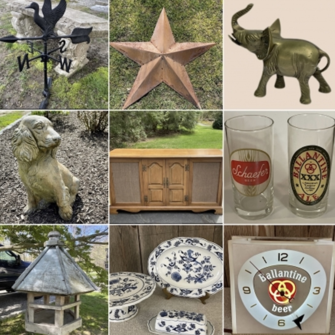 A fantastic moving sale in Ridgefield CT with so many beautiful items! Some amazing teak benches, cement bird bath, cement outdoor figurines, tons of porcelain figures, lots of copper & brass, beautiful lamps, some great furniture including a large curio cabinet you need to check out! There’s also a mix of some vintage toys, magazines, sports memorabilia, pottery pieces, vases, candle holders, mirrors, Christmas decor, bottle, Capidomonte pieces, collector plates, barware, outdoor planters, an ice machine, an Emeril Air Fryer, a snow blower & SO MUCH MORE!