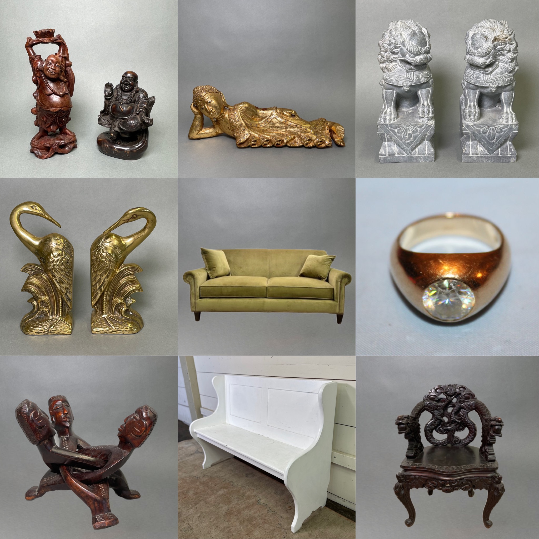 Fantastic Finds in Collinsville CT! Pick up at our store, Bridge Street Rustics. A beautiful mix of treasures brought in from two West Hartford estates. There are some very unique items, including many Asian inspired pieces, beautiful jewelry including gold, couches, antique tables, tools, vintage hats, amazing canes, unique carved wood pieces, book ends, great art work and so much more. Pick up will be in our store, Bridge Street Rustics, in the Collins Axe Factory. When you pick up your items, you can shop for many more unique finds! If you can’t make the designated pick up times, reach out to discuss alternate options! We do offer nationwide shipping through the UPS store as well.