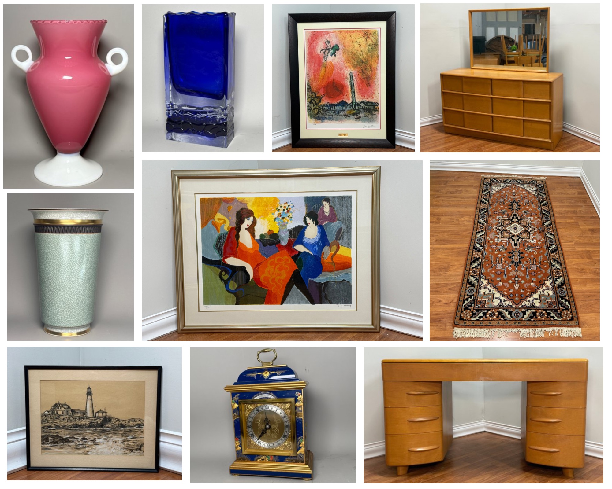 Explore the treasures from two beautiful homes in the Farmington Valley, filled with lovely furniture, decor, art, china, signed art glass, antique and vintage collectibles and more. These beautiful items were transported to our warehouse in Collinsville CT. For furniture, you just pull right up to warehouse doors for loading - no stairs or anything. Please reach out with any and all questions! Chris & Lauren 860-368-0122