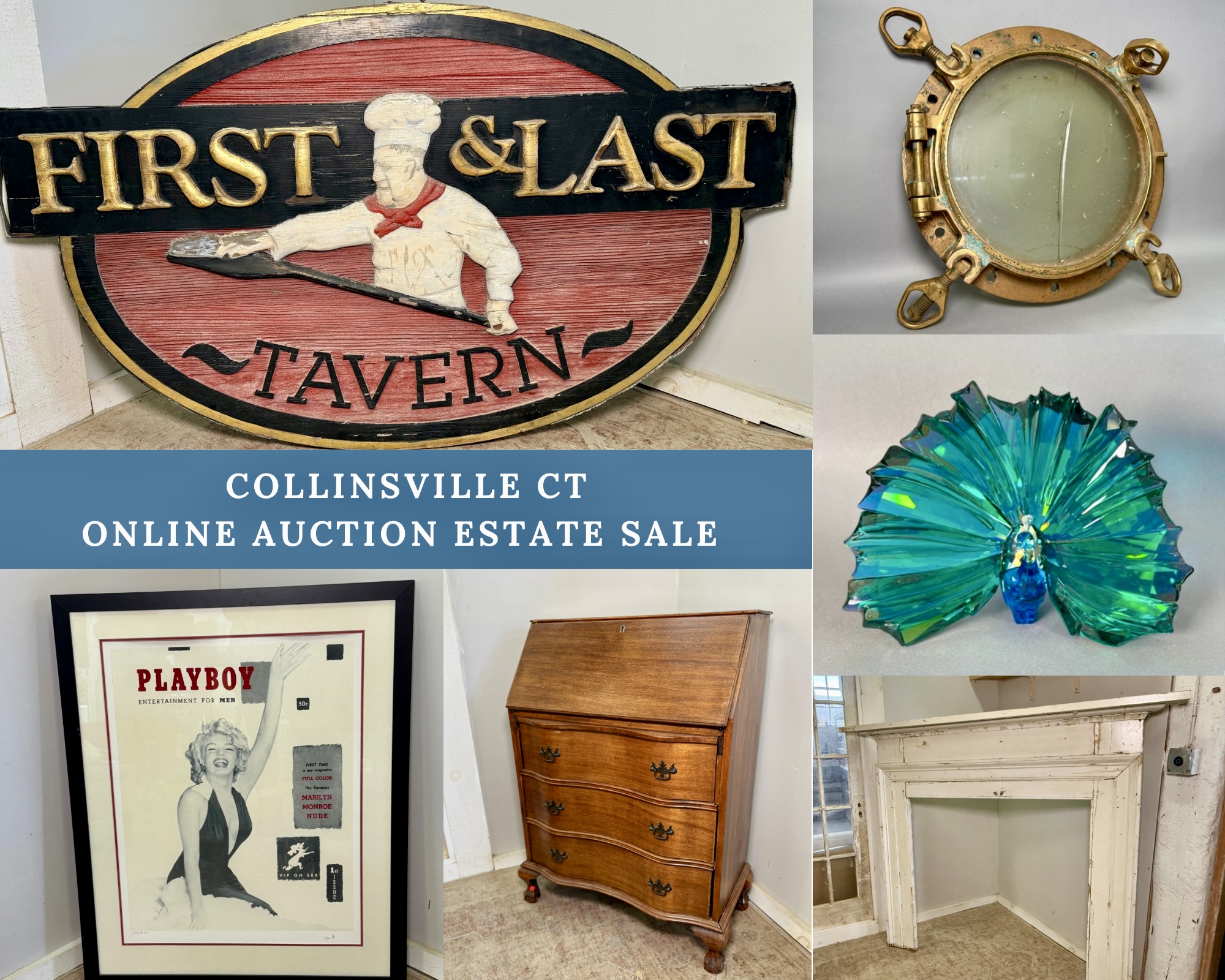 Explore some great treasures from the Farmington Valley! A beautiful mix with some rare finds. Check out the signs from the First & Last Tavern of Avon, including the original handmade wooden one! There’s some beautiful decor, such as Swarovski crystals, lladro, nautical decor, beautiful art pieces, great furniture, vintage and antique collectibles and more! Please reach out with any and all questions! Chris & Lauren 860-368-0122