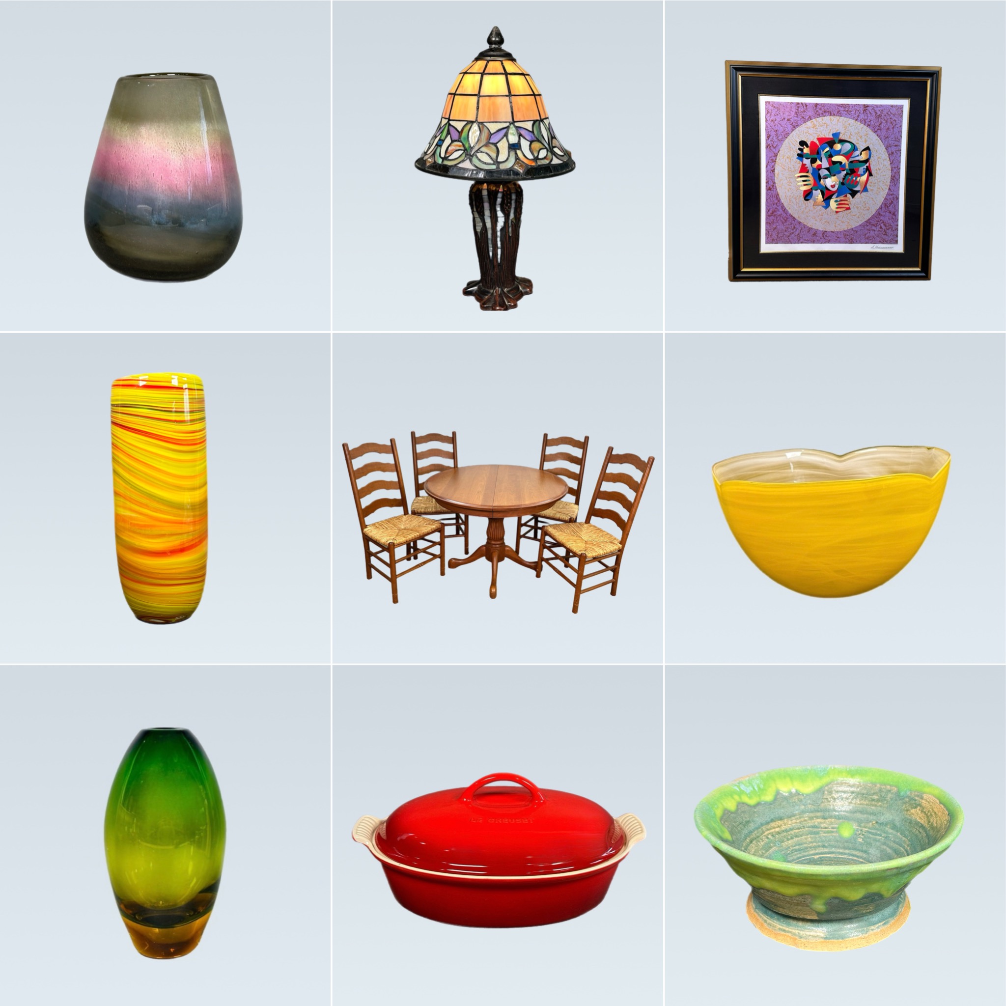 A beautiful home filled with so many treasures. The woman who owned all of these items, had a great eye with so many lovely pieces of art, beautiful decor and so much more. You will find a really great variety. She loved to entertain and would have fun themed dinner parties, so there are tons of dinner ware items like serving ware, plates, glasses etc. She has some of the most amazing works of art, ranging from giclee on canvas to original pieces. Check out the amazing decor that you can fill your shelves with, including many quality well made pieces. If you love rust and cement, check out all of the great outdoor furniture throughout the auction. Do not miss that cement patio table with benches! Lots to see, be sure to scroll through to the end. We can accommodate shipping so please reach out to inquire! Best of luck! We are here to answer any questions. Chris & Lauren Bridge Street Rustics