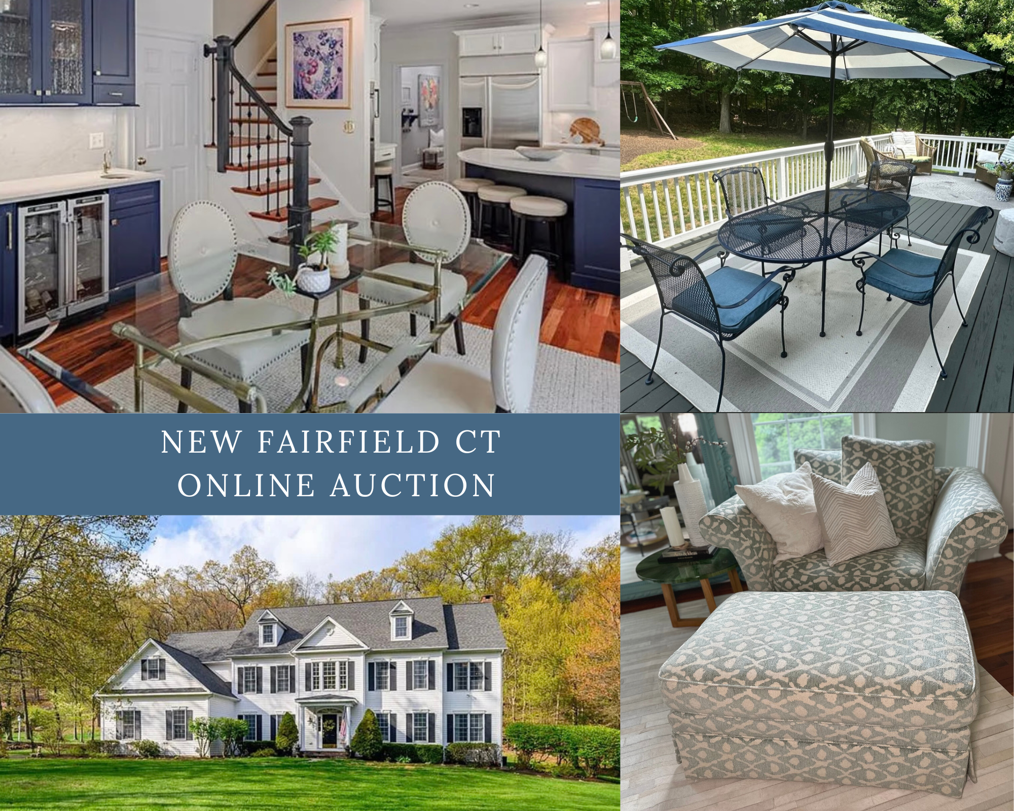 Thank you for visiting our auction! We are happy to present to you this fantastic moving sale at a beautiful home in Weston CT. An absolutely gorgeous estate filled with so many treasures. There is such a great mix inside — Pottery Barn, Crate & Barrel, Lillian August, Stattan Tru Type, Frontgate and so so so much more. There’s tons of outdoor plants, outdoor concrete decor, furniture, custom pieces, accent chairs, sofas, bar stools, rugs, serving ware, bar ware, lots upon lots upon lots of home decor, sterling silver, buffet consoles, entry tables, kids toys, electronics, books, light bulbs, a great firepit, armoires, entire sitting areas, 4 sets of fireplace decor. An AMAZING modern farmhouse style kitchen table with 8 chairs. Be sure to check out that stunning bar that was never used! There’s even a soaker tub, sink & bathroom vanity that are all new & never used. We can go on & on but we would love you to see for yourself! Please reach out with any questions at all. You can text us direct at 860-368-0122 instead of using the “Ask a question” button. Everything will be moved to ground level for an easier pick up experience. If you love some of the furniture pieces but cannot make the designated time, reach out before bidding to discuss an additional appt time for furniture..