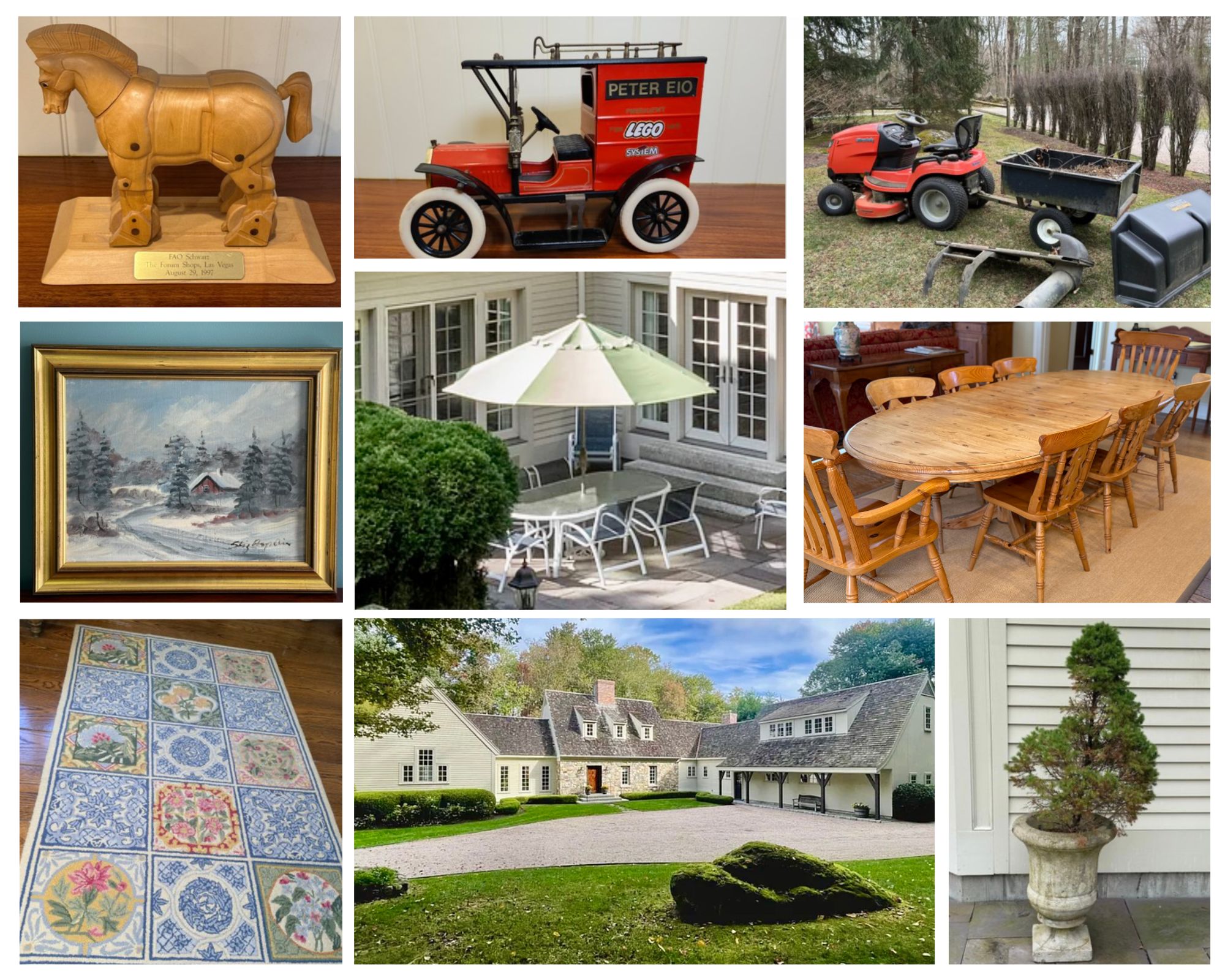 Explore the treasures from this beautiful 8,000 square foot home located in West Hartford CT. You will find a lovely mix of quality furniture, stunning custom made rugs, beautiful decor, great works of art, outdoor furniture, kitchenware, quality men’s watches, antique and vintage collectables, designer shoes, purses and clothes including Chanel, garage items, tools and more. Please reach out with any and all questions! Best Wishes, Chris & Lauren 860-368-0122 - text is best