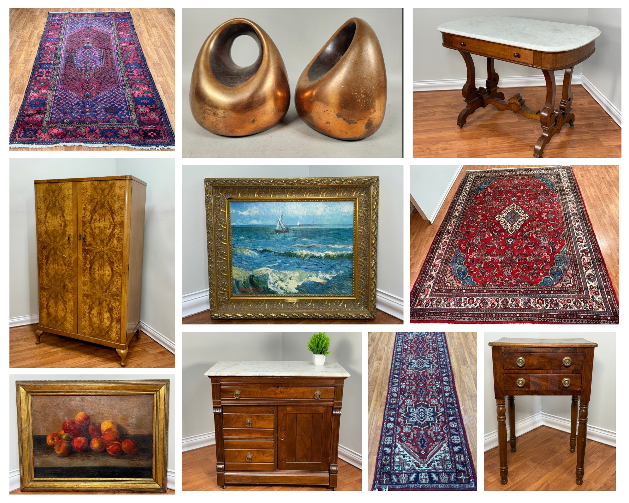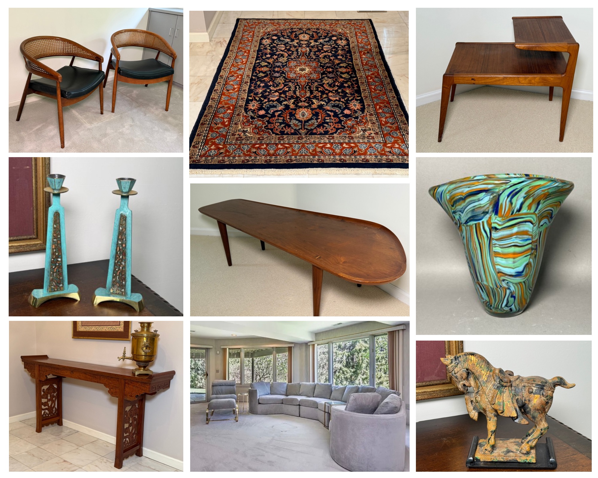 Explore the treasures from this beautiful home filled with a gorgeous collection of antique and vintage furniture, handmade rugs, beautiful works of art, decor, lamps and many more treasures. These items were collected over the years from a gentleman who had a passion for antiquing. He showcased these treasures in both his own home and his law firm. You will find an eclectic mix! Please reach out with any and all questions. Thanks!