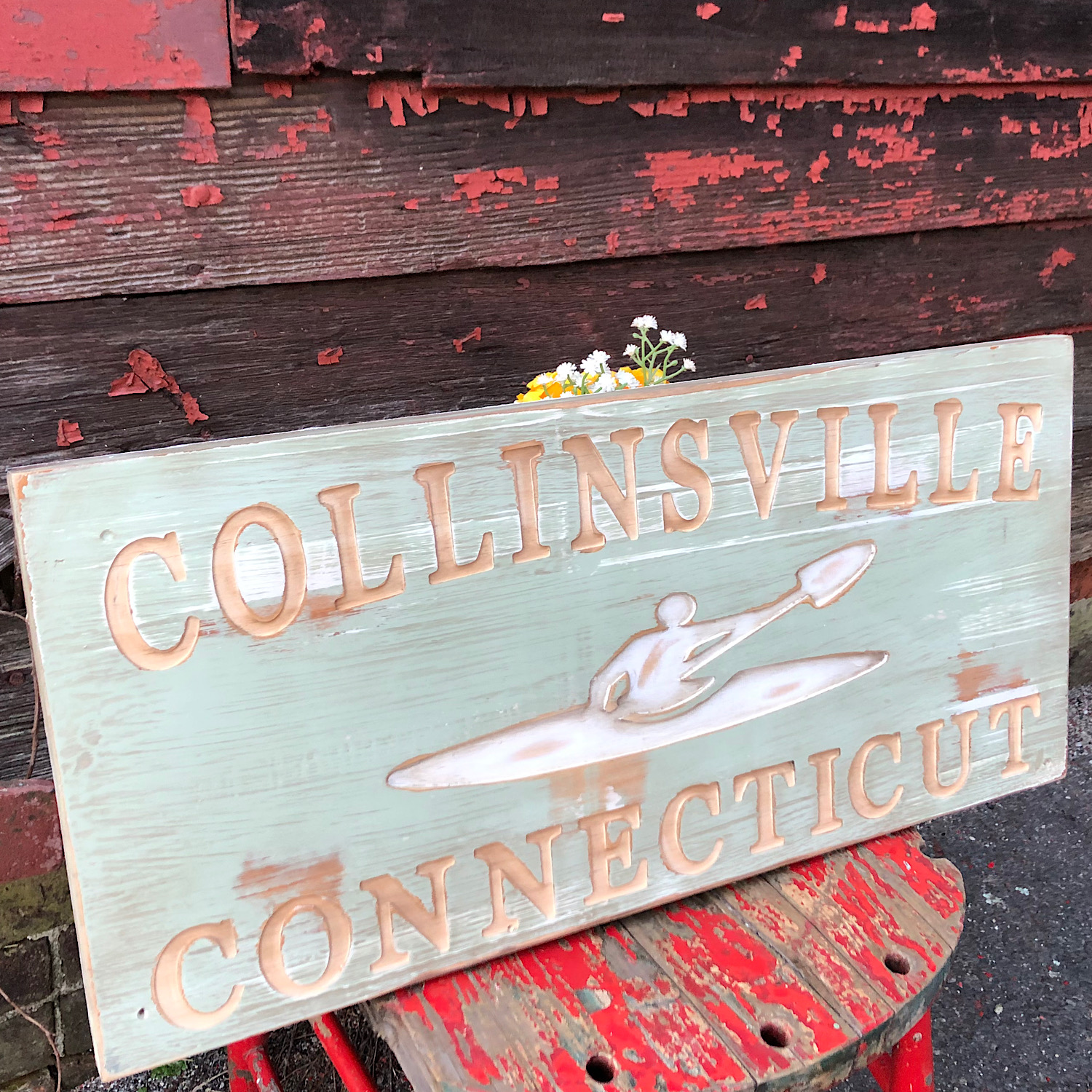Perfect gift for your kayak lovers! You can swap out Collinsville CT with other text. For indoor use only