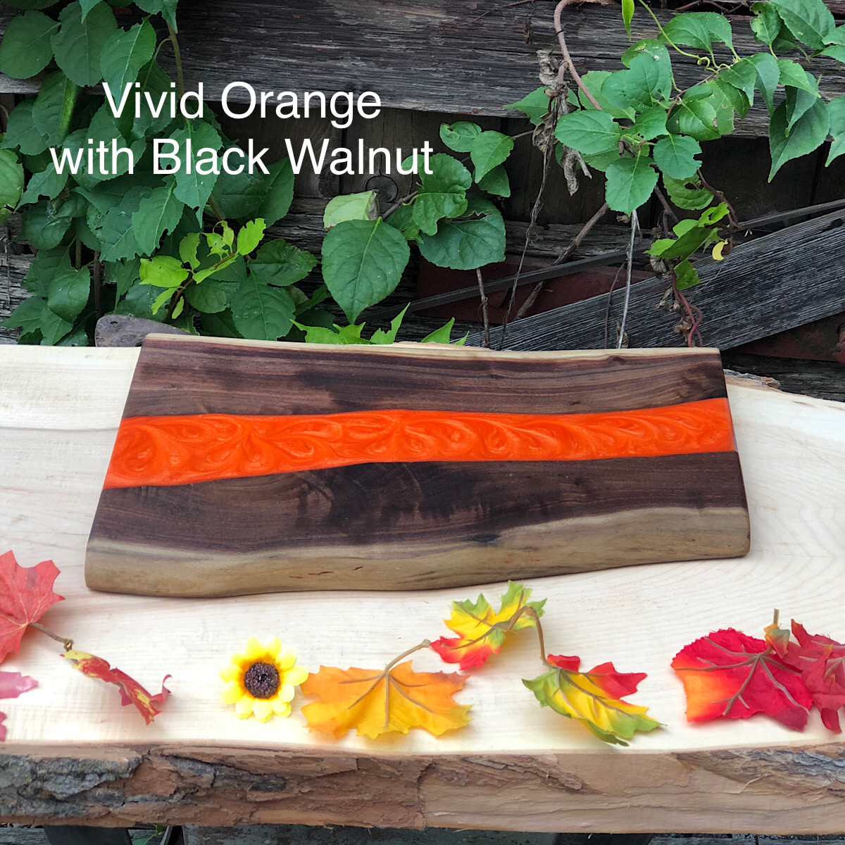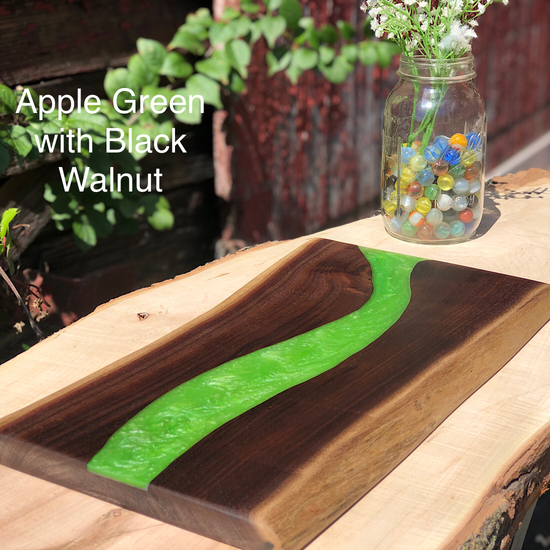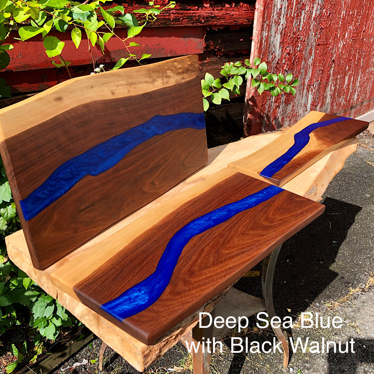 These look amazing as an art display and also make great serving boards! We source our live edge locally when possible and our selection varies depending on what we find each week. You have the option to choose a wood type or select “Leave it to us” and we will find you a beautiful piece that compliments the river color you choose. We source the wood in its raw form as one long slab. In order to level it, it goes through our drum sander for a while and then gets cut to size. We then hand router the river and pour the epoxy resin in. We “baby” the resin for a couple hours giving it that extra love and depth feel, and then it sits and cures for a couple of days. We then drum sand or plane the excess resin off and it goes through a 10 step sanding process to 3000 grit. We then polish it with beeswax, vitamin E, pure mineral oil and coconut oil for a beautiful look and great protection.