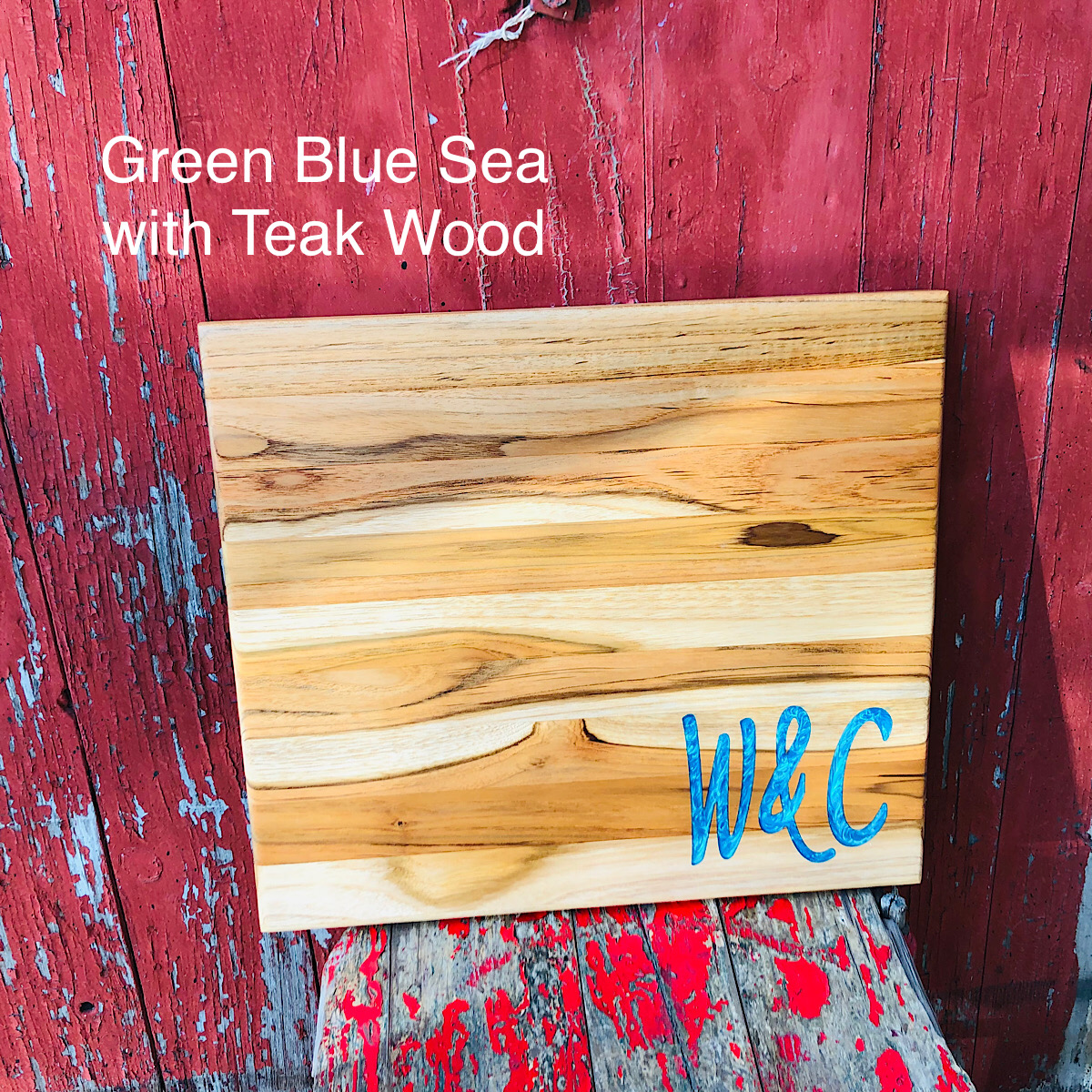 Hand wash your board with warm soapy water and towel dry immediately. Do not submerge in water. Apply cutting board oil monthly or as needed to protect the board and keep it looking beautiful! Do not use sharp knives on the epoxy resin portion of your board. It’s best to use dull cheese knives or use as a serving board with meats and cheeses sliced beforehand and placed on board.