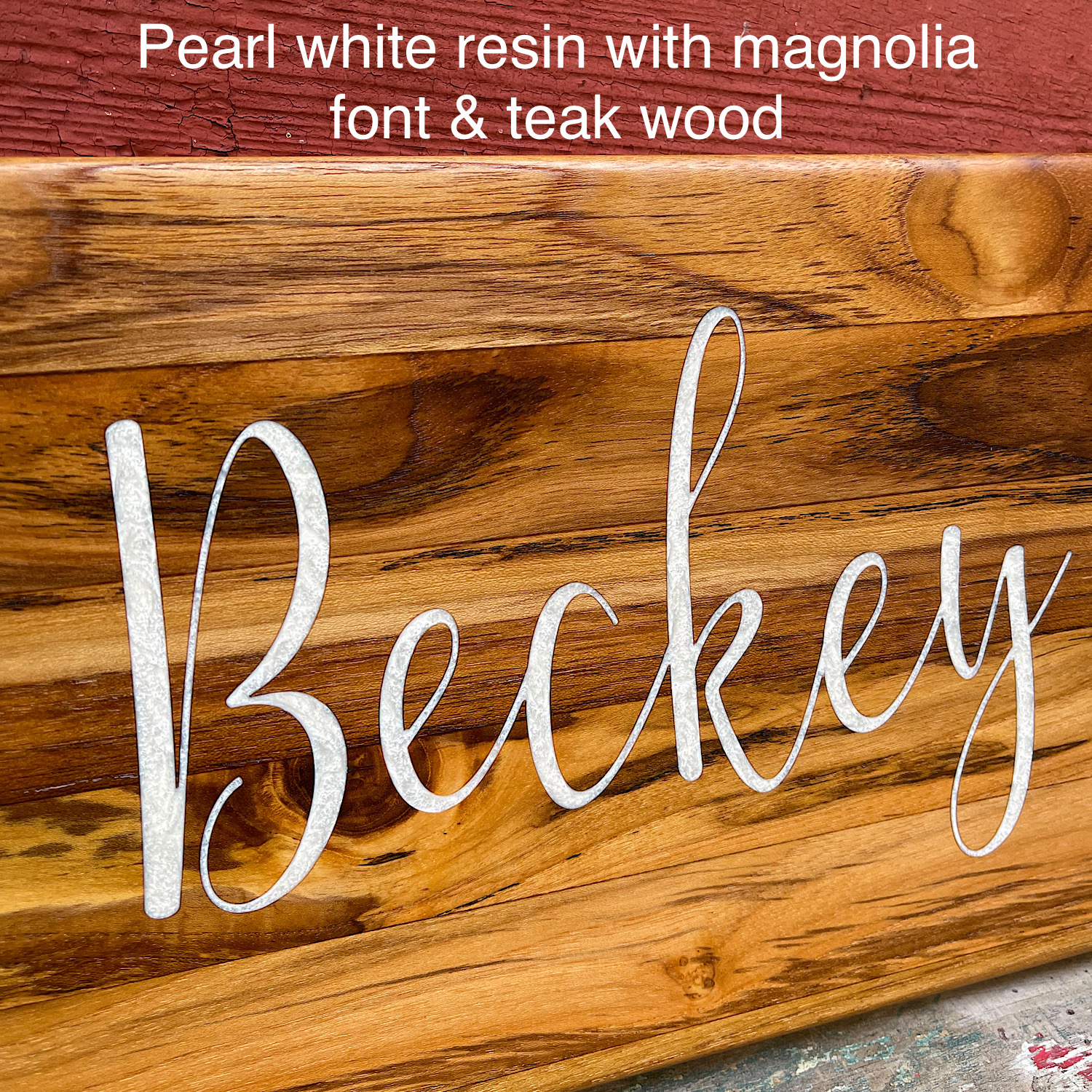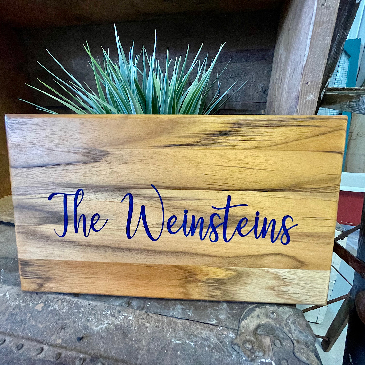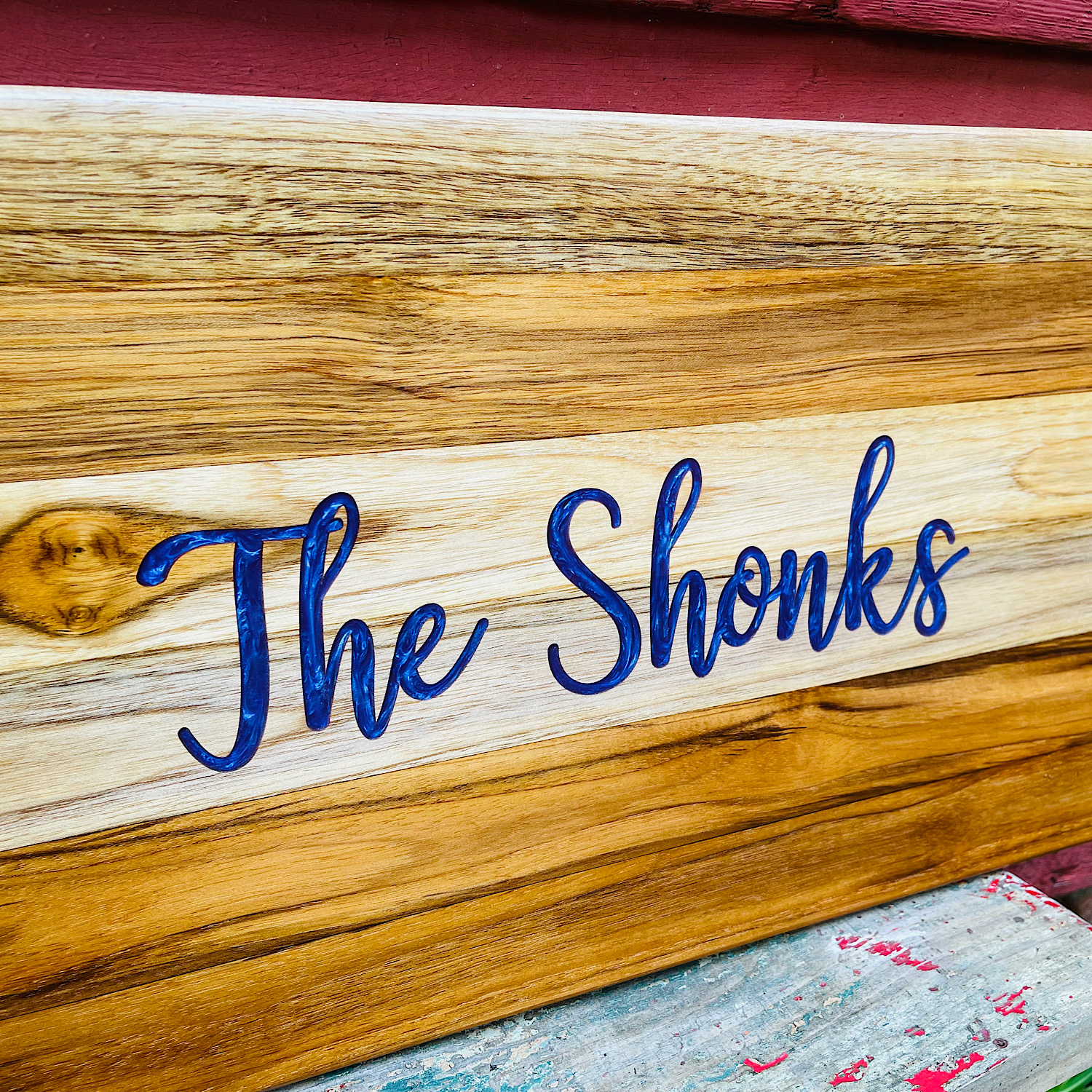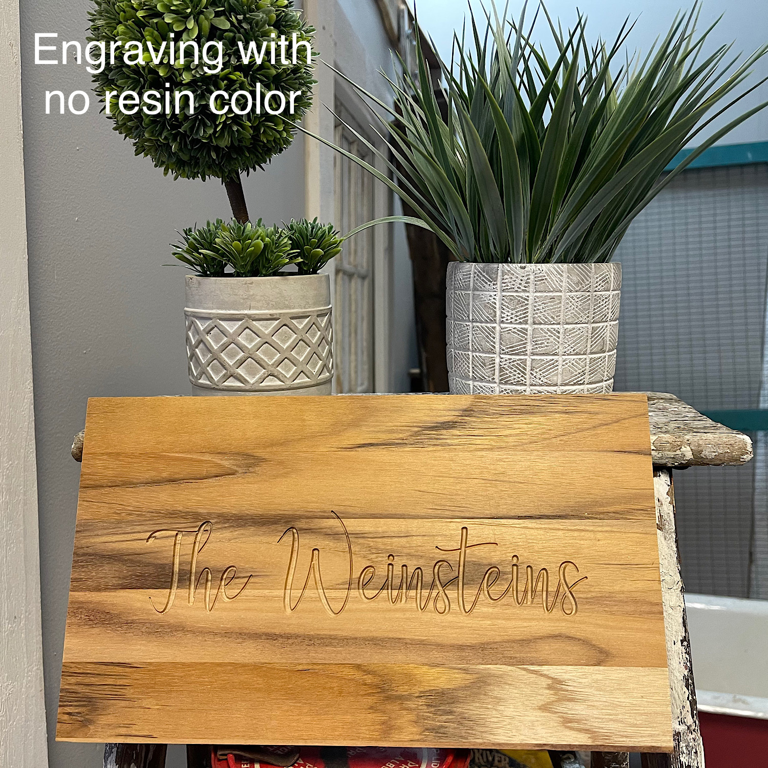 You can personalize with a last name, a first name, two first names etc. You have the option to just do a light engraving or to do an engraving with a resin color fill. If you just want the light engraving with no color, select "Not Applicable" under epoxy color choice. We will send you a proof before we create it.